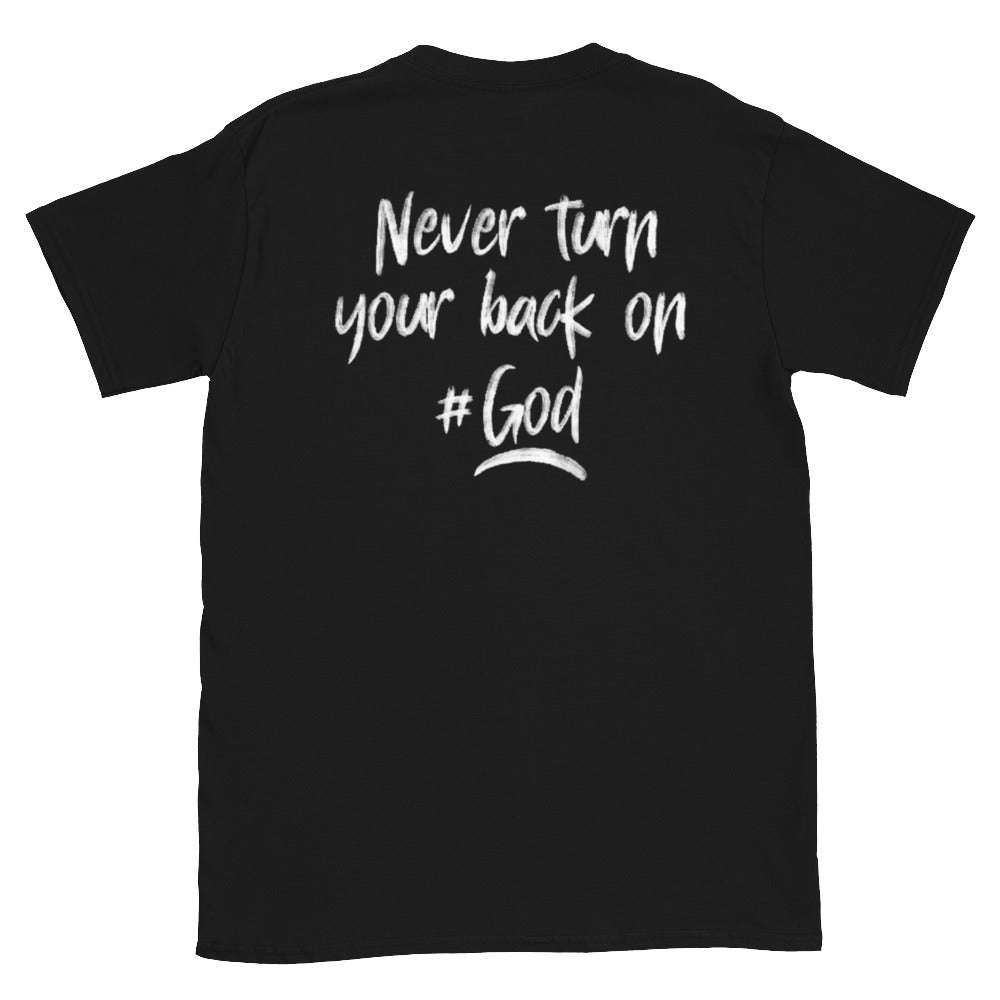 Never Turn Your Back on God staple T-shirt by Sufferings & Offerings. It's made of 100% ring-spun cotton and is soft and comfy. The double stitching on the neckline and sleeves adds more durability to what is sure to be a favorite!